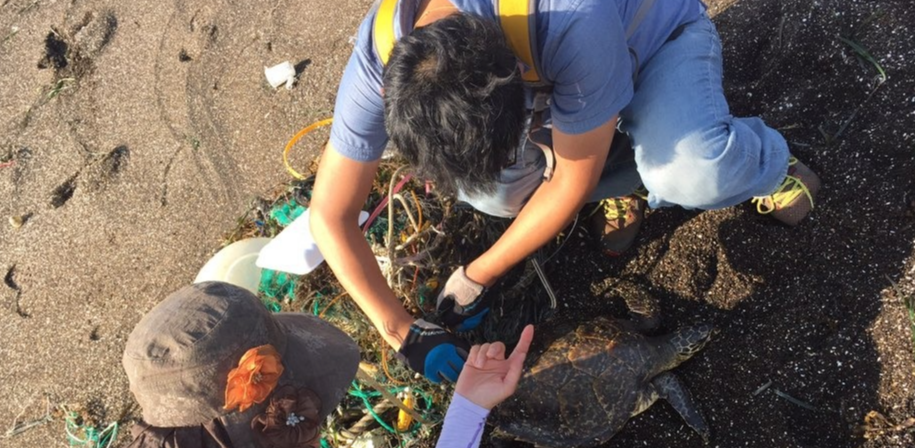 어느 날은 이곳 광치기해변에서 거북이가 그물과 여러 쓰레기 더미에 엉켜